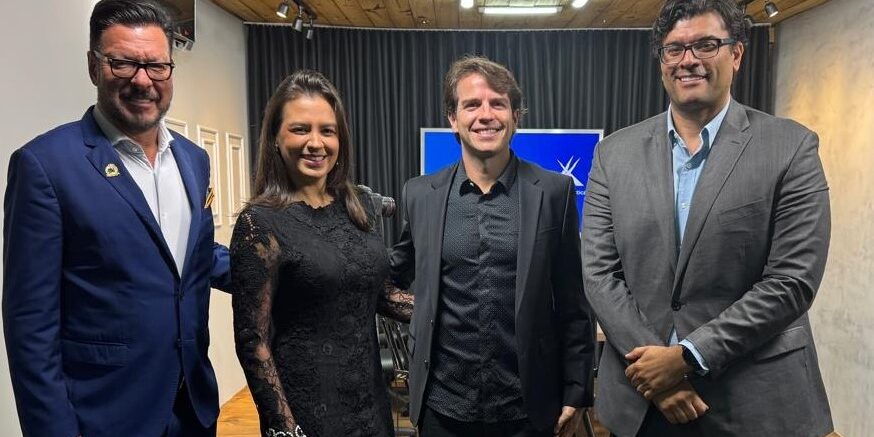 Nelson Fernandes (esq.), Bruna Cândida, Paulo Gonçalves Jr. e Fabiano Calixto: cirurgiões plásticos no podcast Lipo e Evolução